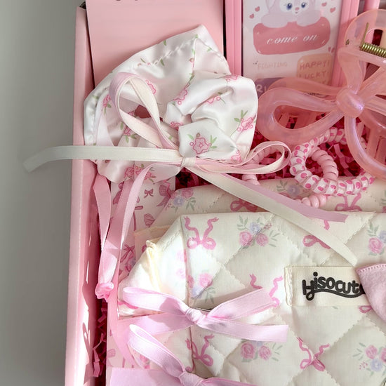 💌 Notebook, bookmark, and hair accessories may slightly vary in color or design — each box is hand-assembled and keeps the same pink aesthetic.
