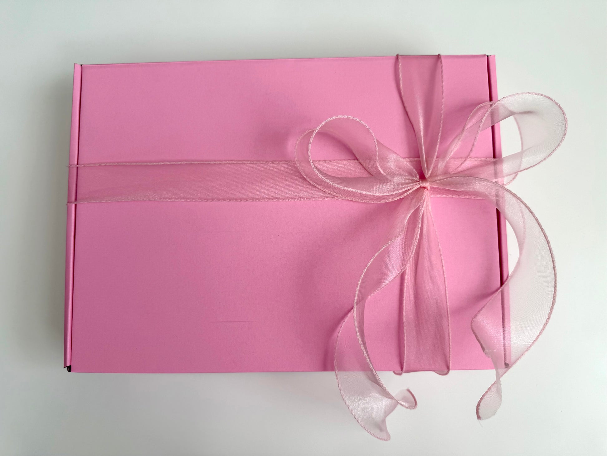 All items come beautifully arranged in a pink aesthetic gift box, tied with a satin ribbon and ready to gift — no extra wrapping needed!